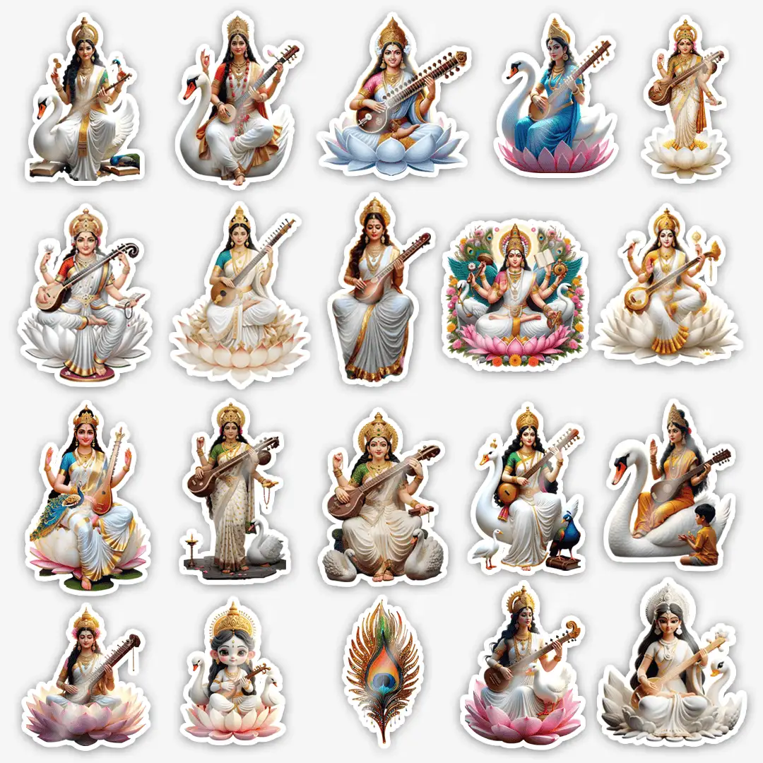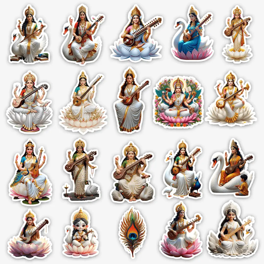 Saraswati Maa Stickers – Pack of 20